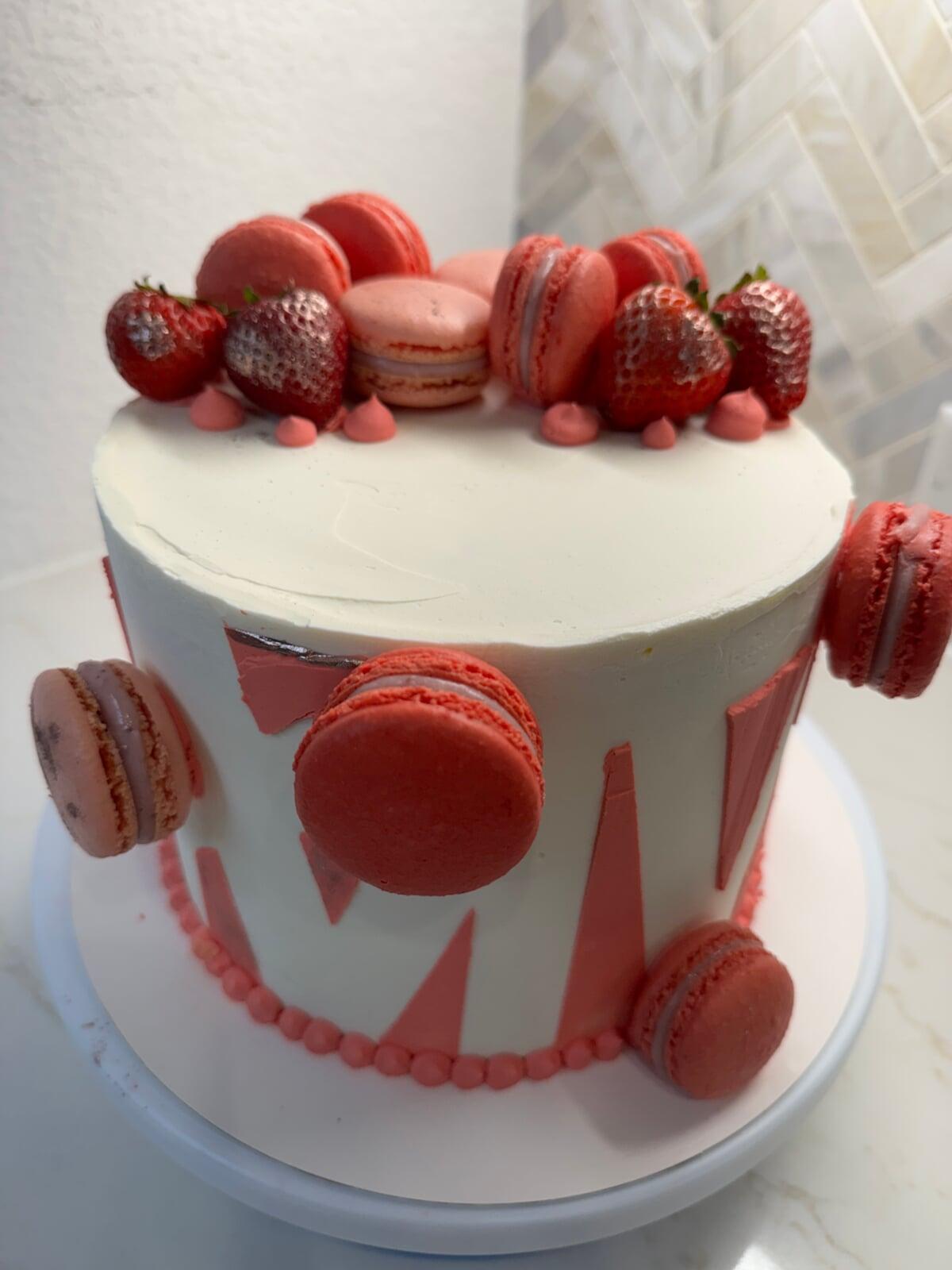 Besides strudel, I also had a birthday cake order for Saturday and one for Sunday. The Saturday cake was for a woman who wanted to surprise her German husband with a European vanilla strawberry cake. When she told me later, he loved it! He said the cake was not too sweet and tasted amazing.